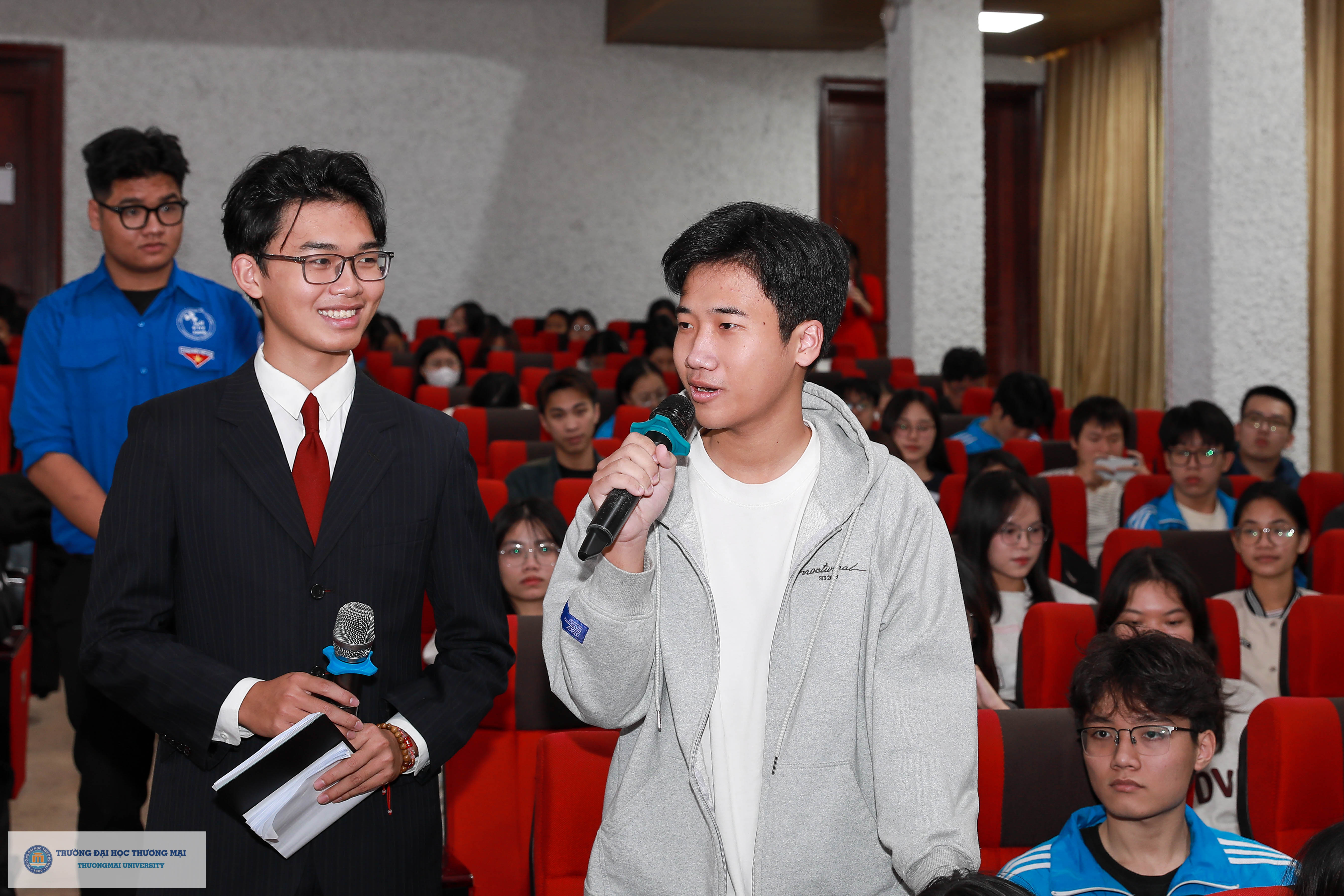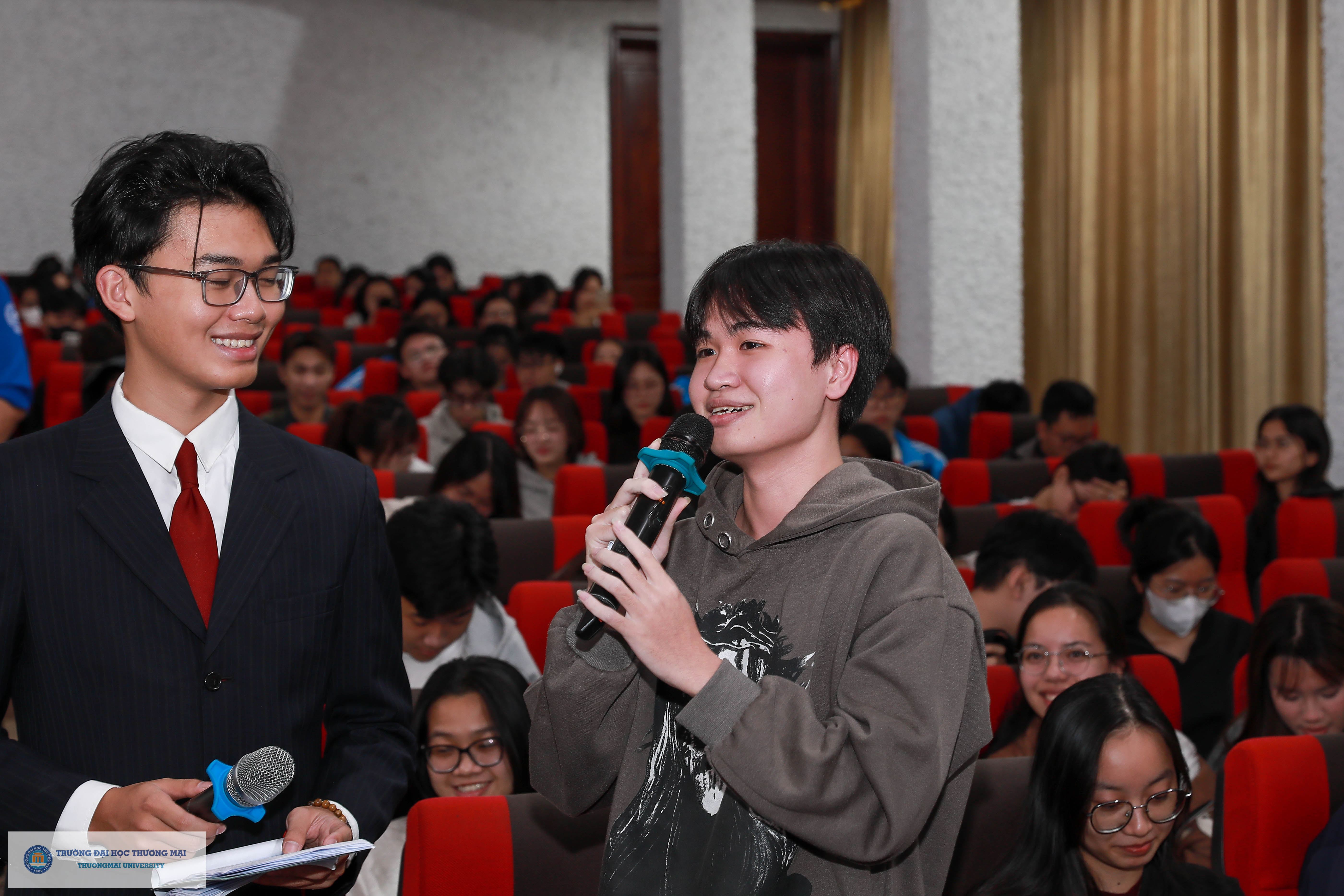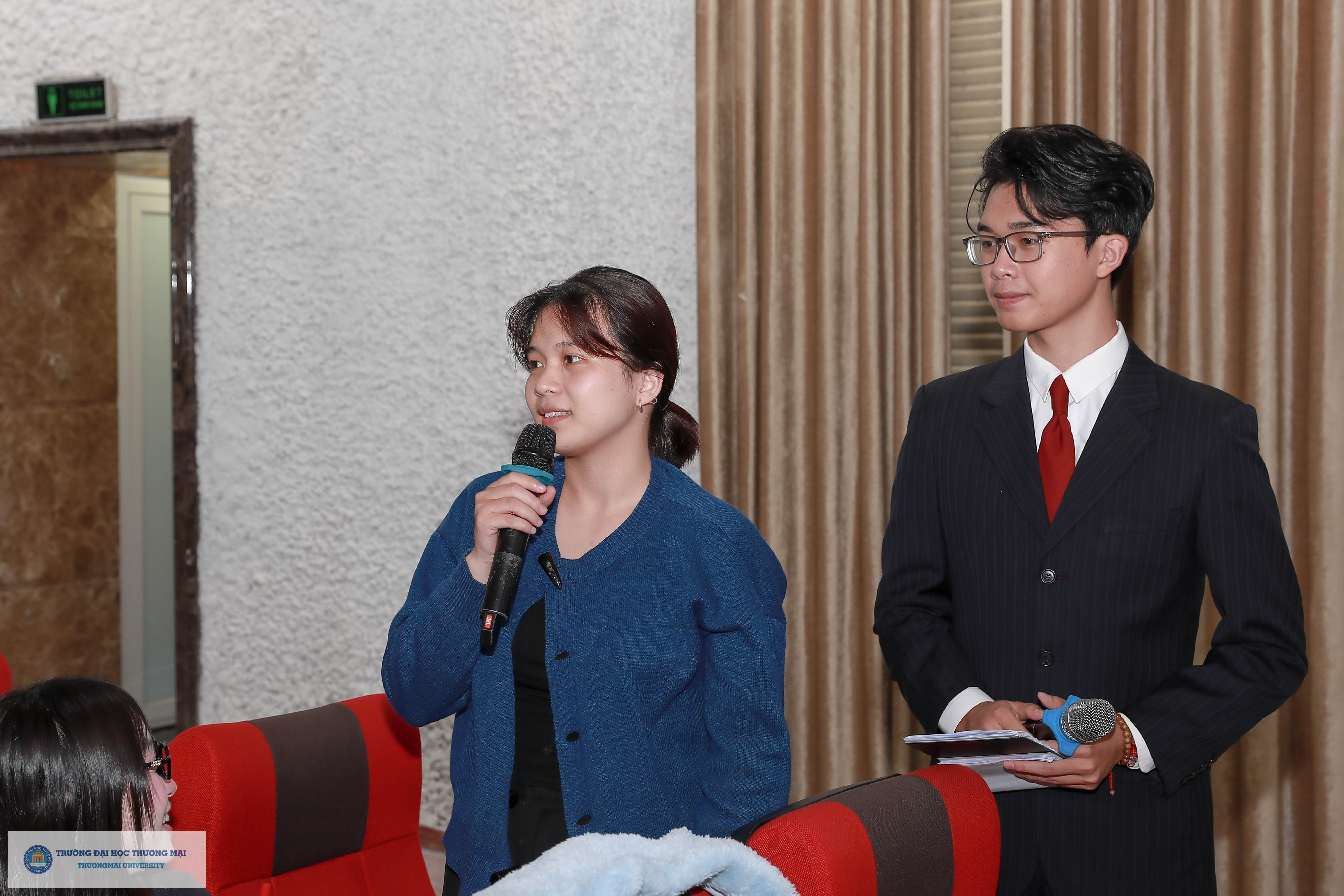 Trong khuôn khổ Toạ đàm, phần Trao đổi, các bạn sinh viên đã thể hiện tinh thần chủ động và cầu thị khi sổi nổi đặt nhiều câu hỏi tới các diễn giả với nhiều nội dung thiết thực như: Cách lựa chọn và triển khai các phương pháp nghiên cứu khoa học hiện đại; Việc ứng dụng AI trong nghiên cứu khoa học; Quy trình và cách thức công bố kết quả nghiên cứu trên các tạp chí khoa học chuyên ngành uy tín trong nước và quốc tế Scopus...