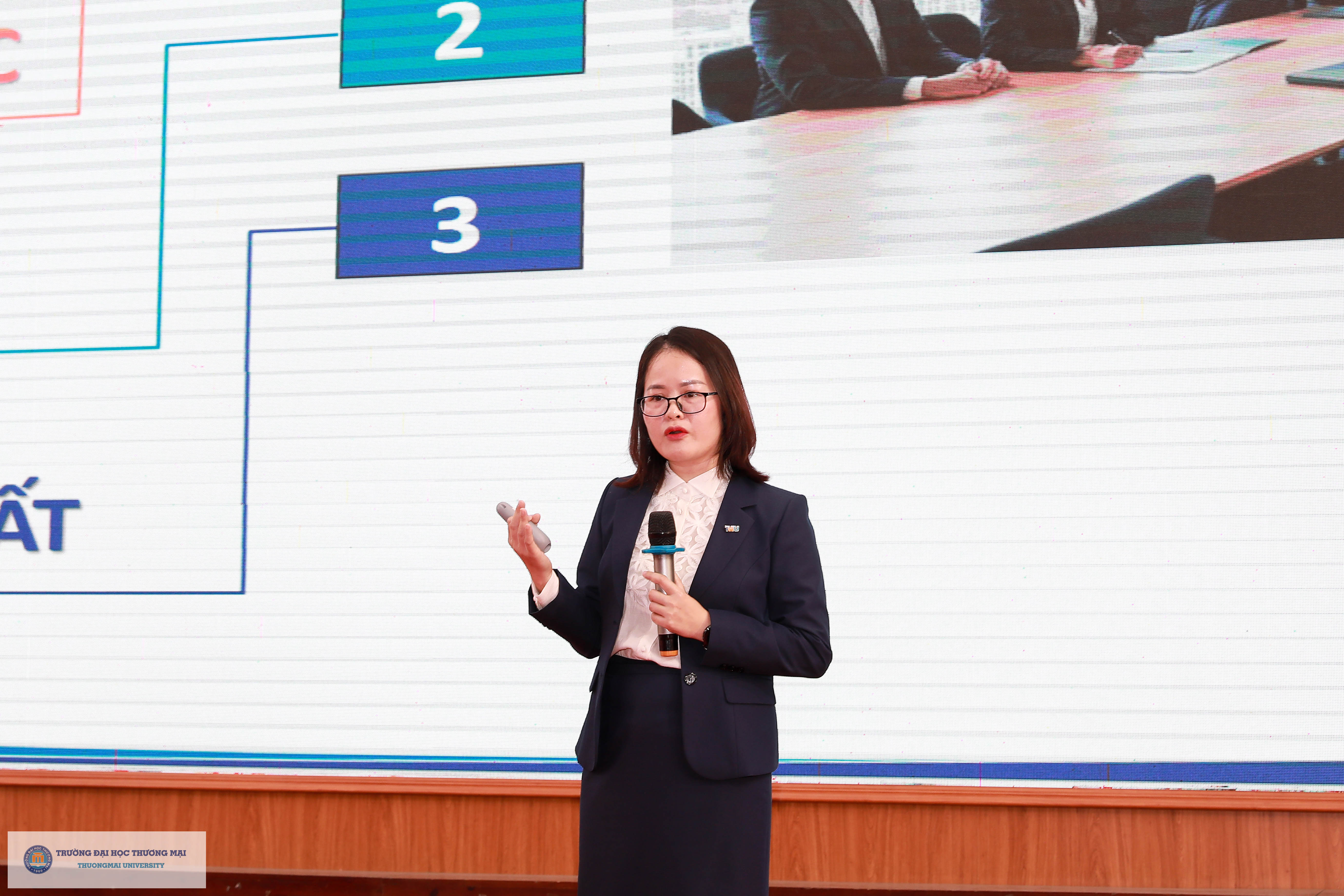 Sinh viên Nguyễn Thị Hồng Liên - Lớp 58A5, Viện Quản trị Kinh doanh đại diện nhóm đề tài đạt giải Nhì Giải thưởng KH&CN cấp Bộ và nhận Best Paper Award tại SR-ICYREB 2025 chia sẻ kinh nghiệm “Chuyển kết quả nghiên cứu đề tài khoa học thành báo cáo khoa học tại Hội thảo khoa học quốc tế”;